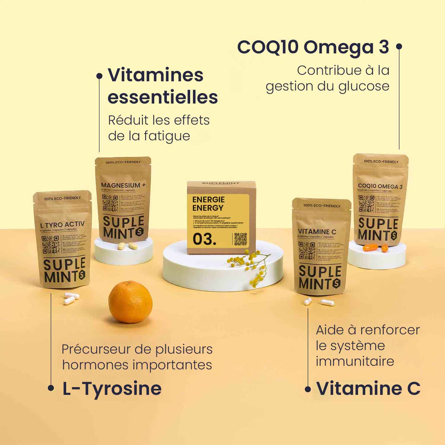 Suplemint est un laboratoire belge spécialisé en micronutrition, avec plus de 25 ans d'expertise. Il est soutenu par une équipe R&D d'experts en génétique, biochimie et médecine. Suplemint propose des cures multicomposants personnalisées, conçues pour répondre aux besoins spécifiques en combinant science et nature. La société a été fondée par Adrien et Maïté Chassaing, accompagnés de Dr Stéphane Résimont, expert en médecine fonctionnelle, et Salva Piscopo, spécialiste des matières premières. Suplemint s'engage à offrir des produits de qualité et innovants.